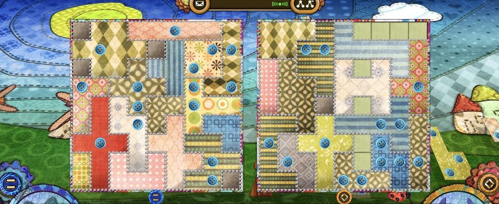 色んな形の生地をボタン(通貨)と時間(進むマス)のコストを支払い購入し、自分のボード?を埋めて行くゲームです。