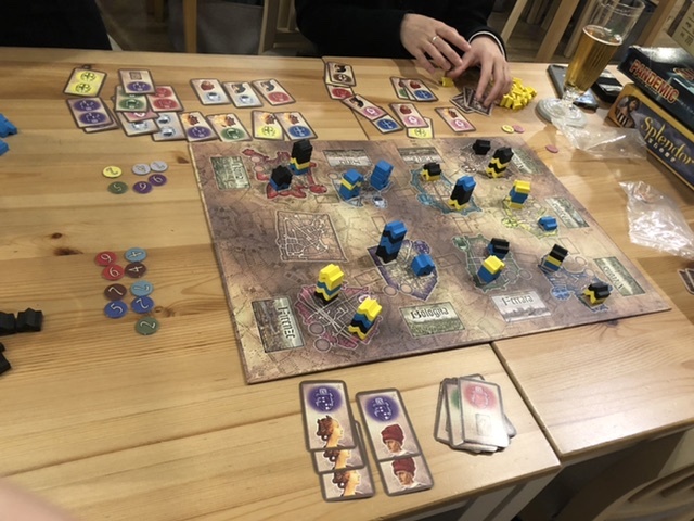 また、ゲーム中は各都市のマジョリティ争いだけなのですが、ゲーム終了後には各プレイヤーが使用したカードに記載された3人の貴族の顔が3枚揃っているとボーナスで一組6点もらえます。