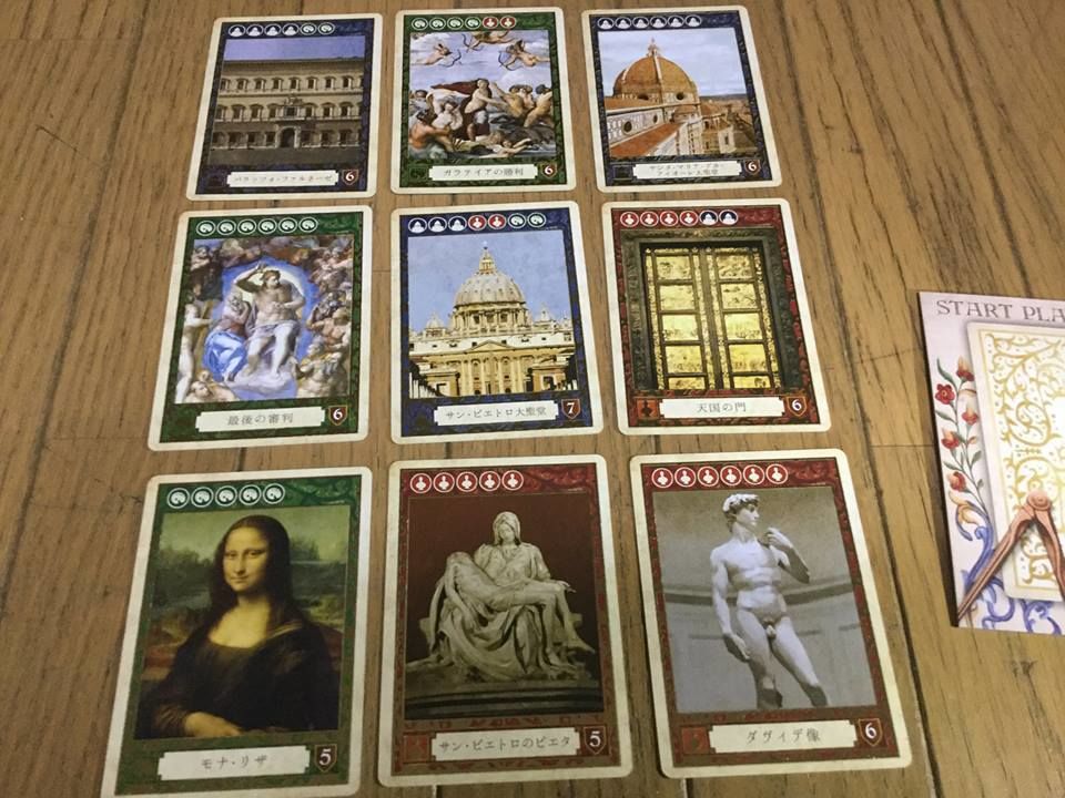 プレイヤーはパトロンとして、工房を買い、芸術家を雇います。最大3つ持てる工房に芸術家を配置します。先生方の得意不得意と一部工房の能力によって、工房それぞれが、建築、絵画、彫刻のそれぞれについてパラメータを持ちます。ここまでは、その気になれば、そこそこ緻密な構築ができます。