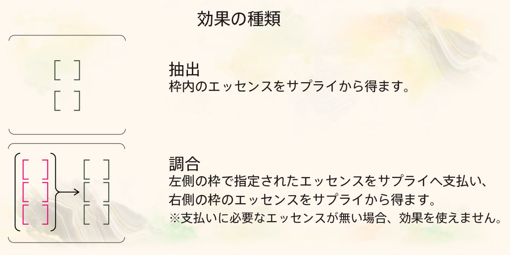 自分の「ノート」のいずれかに設置する事で、調香フェイズでエッセンスの「抽出」と「調合」を行う事が出来る様になります。