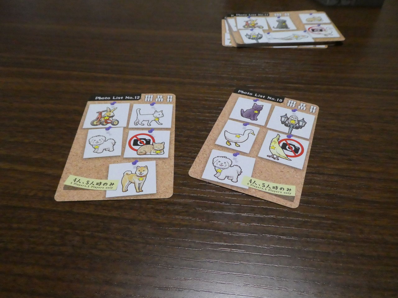 これはスタート時に各プレイヤーに配られ、このカードに指定された動物を全て写すことがゲームの勝利条件になります。
