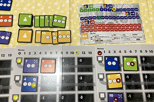 各自、個人ボード上にある4つの生産ラインに工場を建て、製品を生産し、その製品を使って(売って)新しい工場を建てたり、自分の会社に増資を行う。