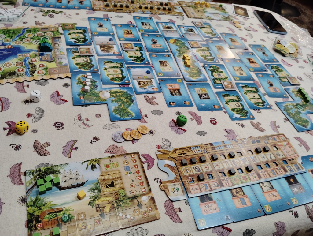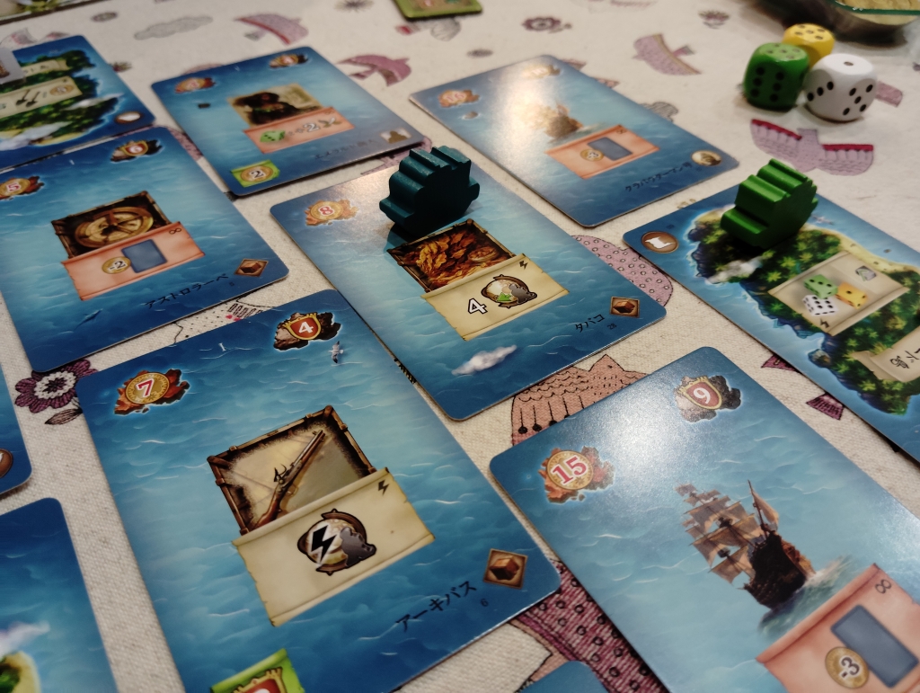 お金は移動だけしてカードを購入せずに5金を獲得するか生産するか船の改良等じゃないと手に入らないので人によってはお金がカツカツな人もいるかな。