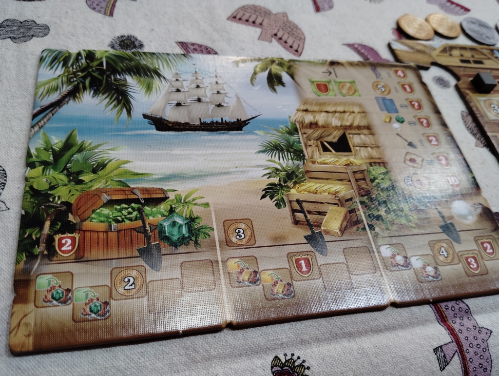 財宝ボードはゲーム終了時に集めた財宝を得点にしたり、集めた財宝をスコップで埋めることで即時効果を獲得します。