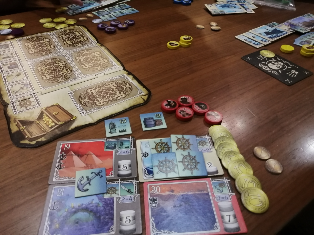 あとは船長はタイルを獲得して、他にはタイルに描かれた操舵チップか舵チップを獲得できます。