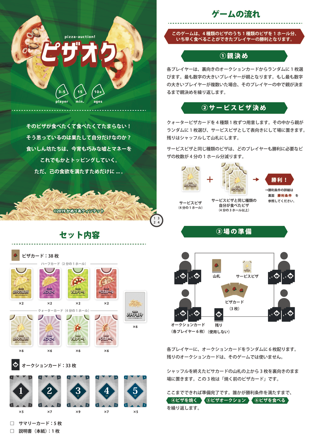 シャッフルした山札の上から3枚 → サービスピザに選ばれなかったクォーターピザ3枚 にする。