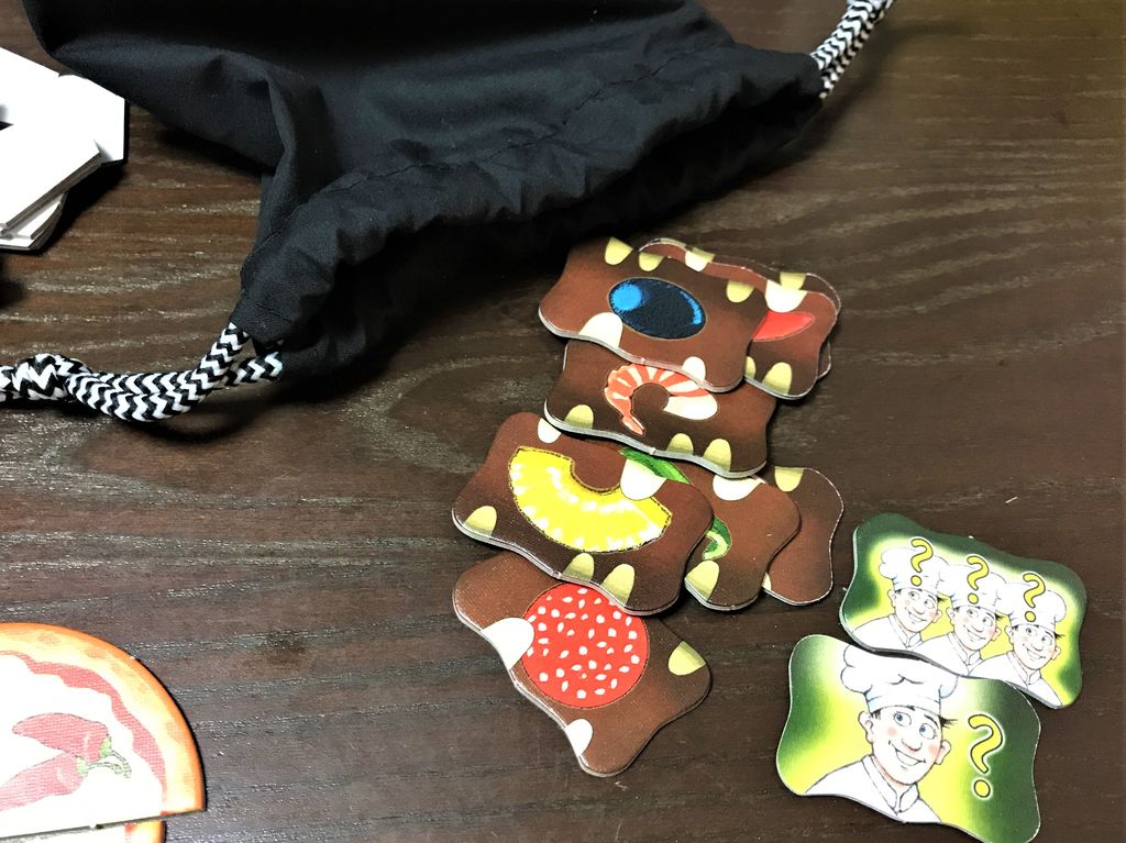 袋には、8種類の具材が書かれた注文タイルと、ジョーカーの役割のコックさんタイルがあります。