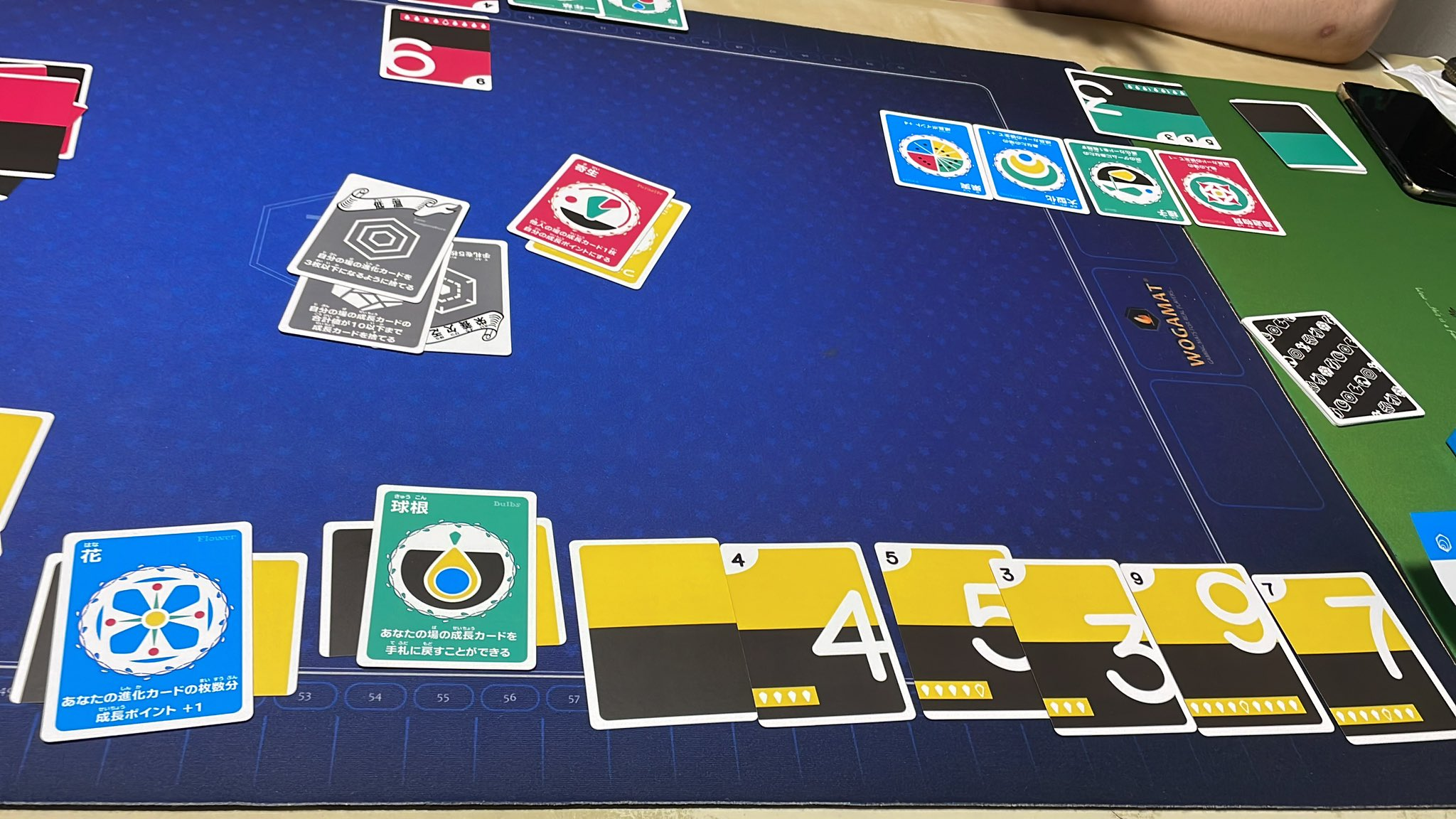 一番大きい数字を出すとめくられた場札(遺伝情報)を手に入れることができ、様々な特殊能力を手に入れます。