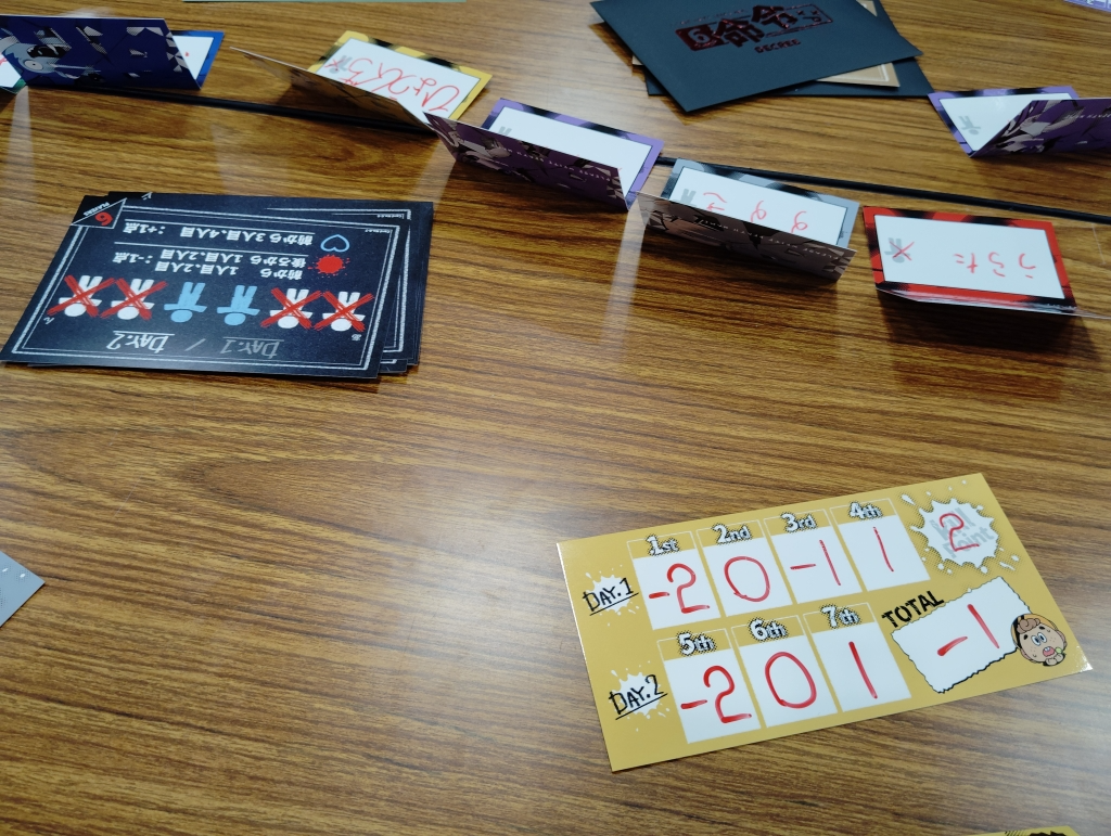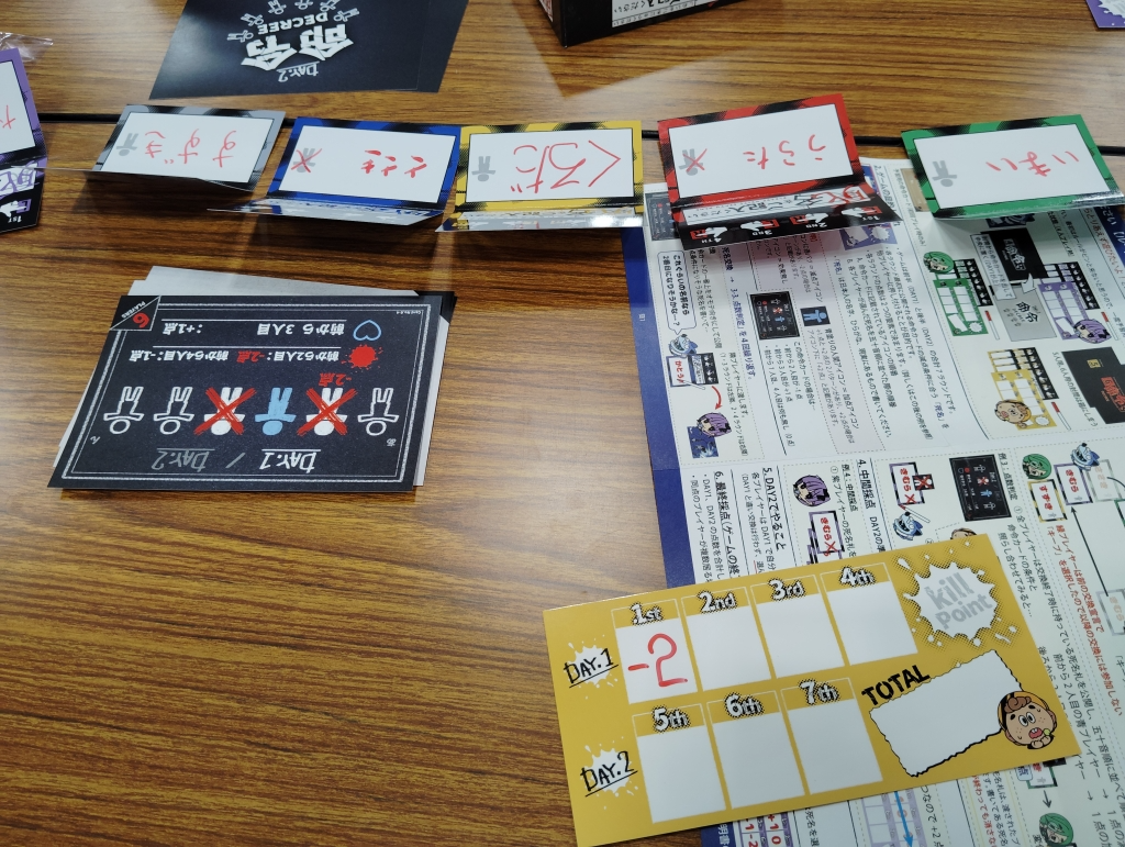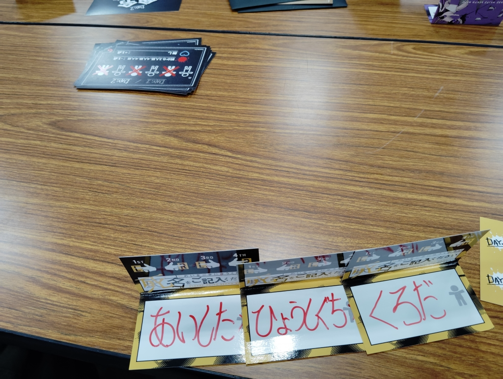 1回選んだ死名カードは選べず、DAY1で記入したカードで戦うことになるのでDAY2のことも考えておかないといけませんね。