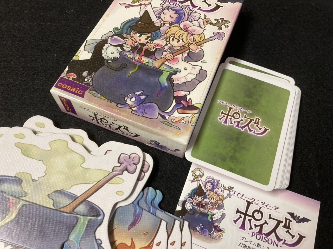 ちなみに旧海外版は、黒地のカードに毒々しい薬品が描かれていて、ボックスアートにも見るからに怪しい魔法使いが描かれています。これが日本版では白地に一新。九月姫さんのかわいらしい魔女さんが描かれたパッケージに変わり、怪しい雰囲気から明るい雰囲気に変わりました。(おかげで女性陣のいるボドゲ会でも気軽に出すことができました。これは大きいですよ。もとのバージョンだったら、たぶん却下されたのではないかと思います。)