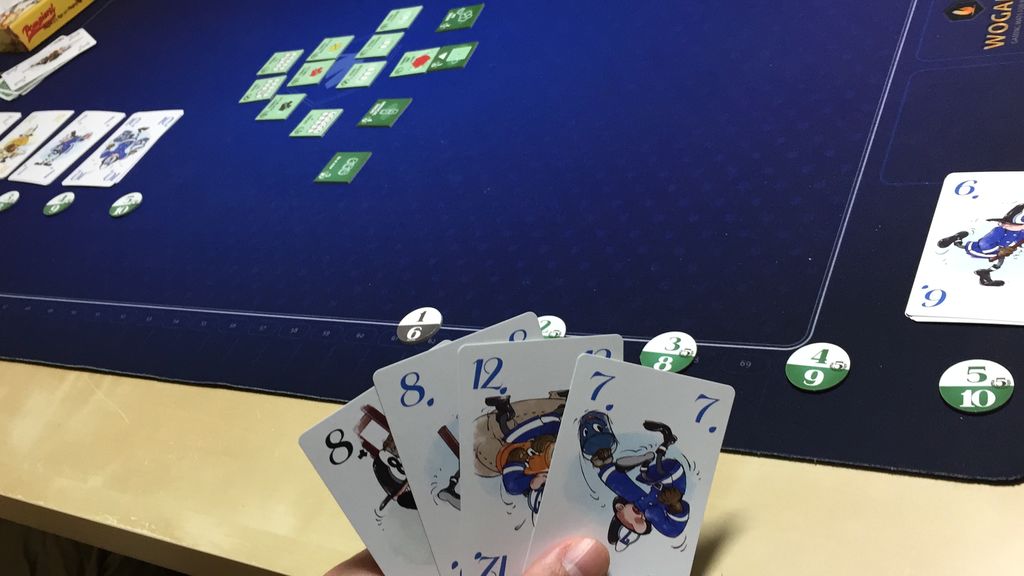 マストフォローのトリックテイクを5回やって得点を集めるゲームです。5回と書いて長いと感じる人もいるかもしれませんが、案外そんなことはなく、結構スピーディーに終わります。