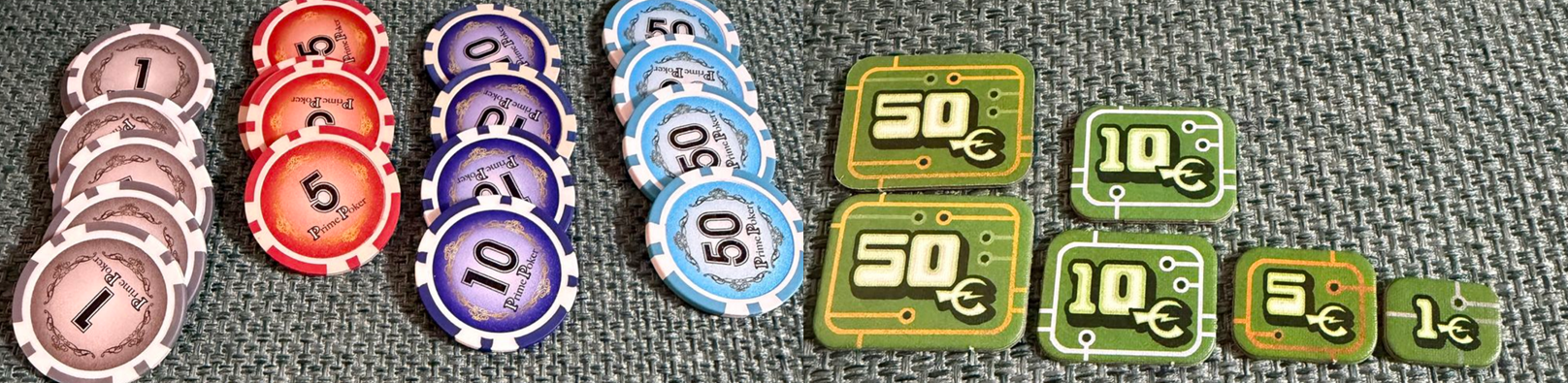 紙なので数えるのが若干手間 + バカラチップの方がプレイ感がいい(オークションの時に)という理由です。
