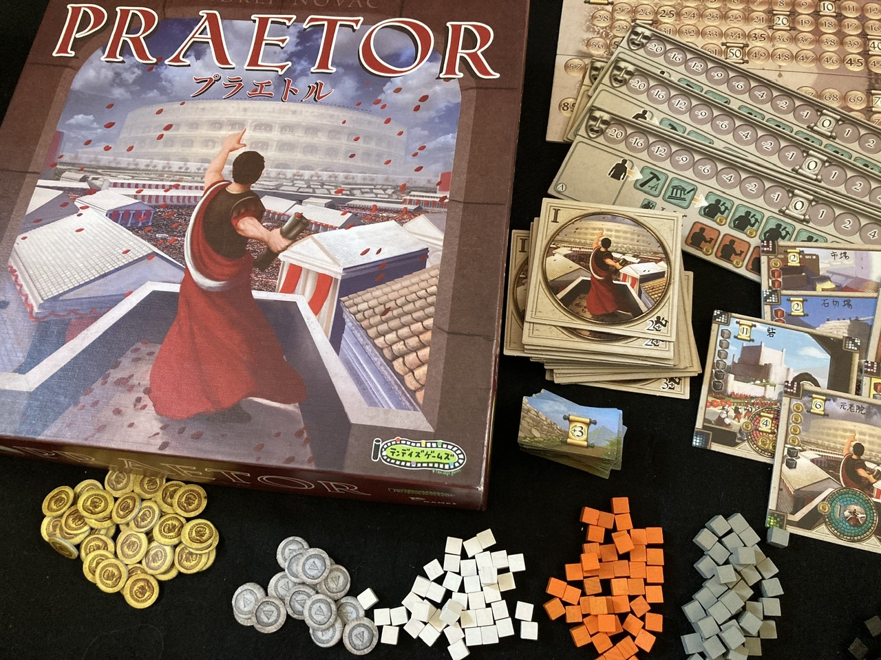 ローマ帝国の都市発展をテーマにした、独特なワーカープレイスメントゲームです。プレイヤーは効果的に都市建設をおこない、最も皇帝ハドリアヌスの好意点を得たプレイヤーが栄光のプラエトル(法務官)となります。