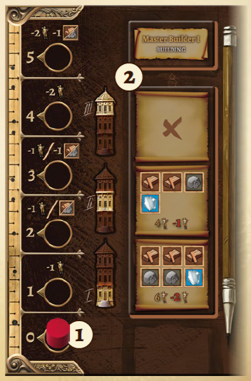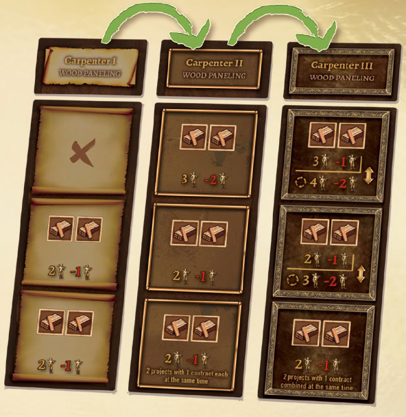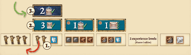 職人は、さまざまな程度の効率でさまざまな建築契約を実行するために使用できます。インストラクターの配置は、次のシーズンのプレイヤーの順番も左右します。1人のプレイヤーが数回連続してターンを行うことはあり得ますし、実際に起こるでしょう。これにより、多くの戦略が可能になります。