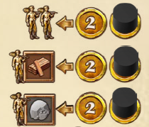 - 3番目のプレイヤー:石灰岩または木材1つ(選択して) +1ゴールド
