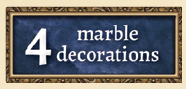 建物タイル - 塔 - 2階 - 基本建物 装飾タイル - 完成した屋内 - 漆喰の装飾(天井) - 木製パネル(壁) - 大理石の装飾(床) - 壁面(外壁) |