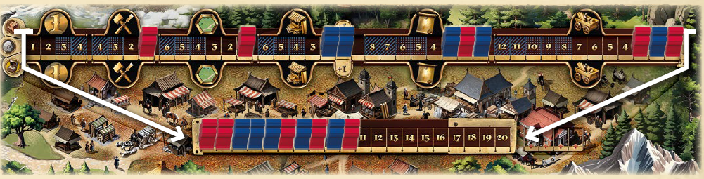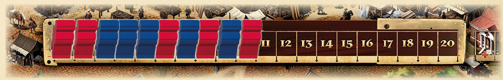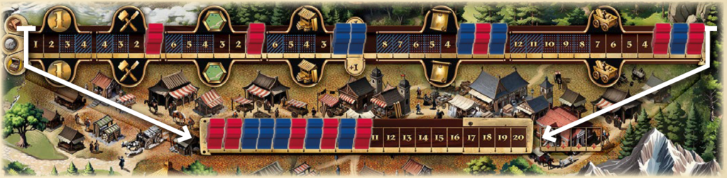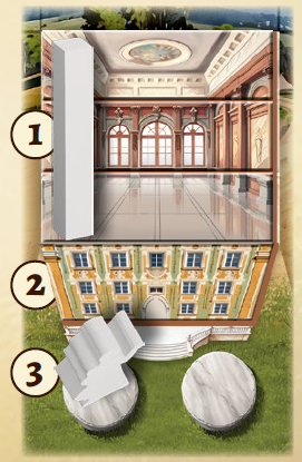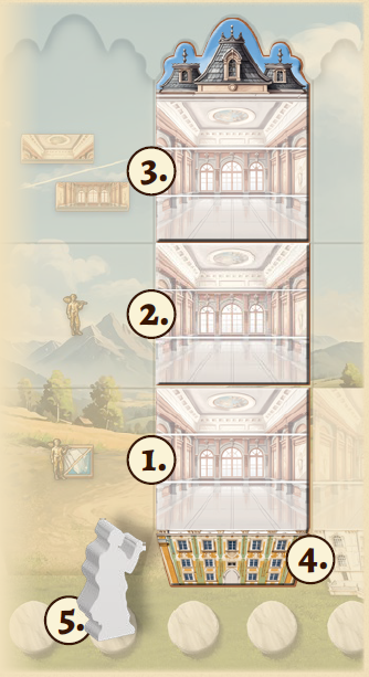 最終的には、最も権威のある建物が勝利します。これを行うには、城の外側を拡張するだけでなく、装飾によって内側も拡張する必要があります。各プレイヤーには2つの異なる勝利ポイントマーカーがあり、遠く離れすぎないようにする必要があります。