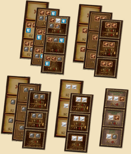 職人は職人のヘッドタイルと職人の注文タイルの2つの部分で構成されています。各プレイヤーにはまったく同じ職人のセットがあります。