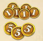 5) 各プレイヤーは開始資金として5ゴールドを受け取ります。