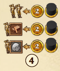 - 4番目のプレイヤー:石灰岩または木材1つ(選択して) +1ゴールド