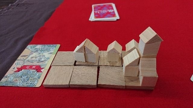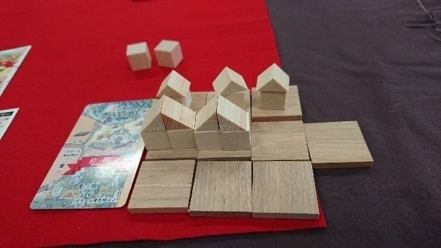 赤 エル2世 集めた資材で一挙に町を3つも建てて15点を得る。