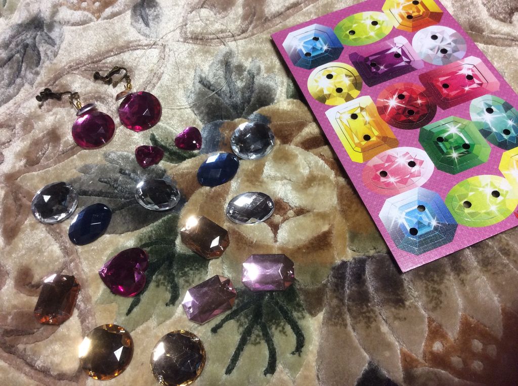 100均で、キラキラ宝石の、裏が平らで銀色、両端に穴も空いているビーズを発見したので、ビーズ用のゴムも購入。ビーズを裏返すと神経衰弱ができます。ただ、形は丸わかりです。紙も丸わかりですが、まだバリエーションが少ないので、紙でめくって、合えばビーズでネックレスを作る、でもいいかも。