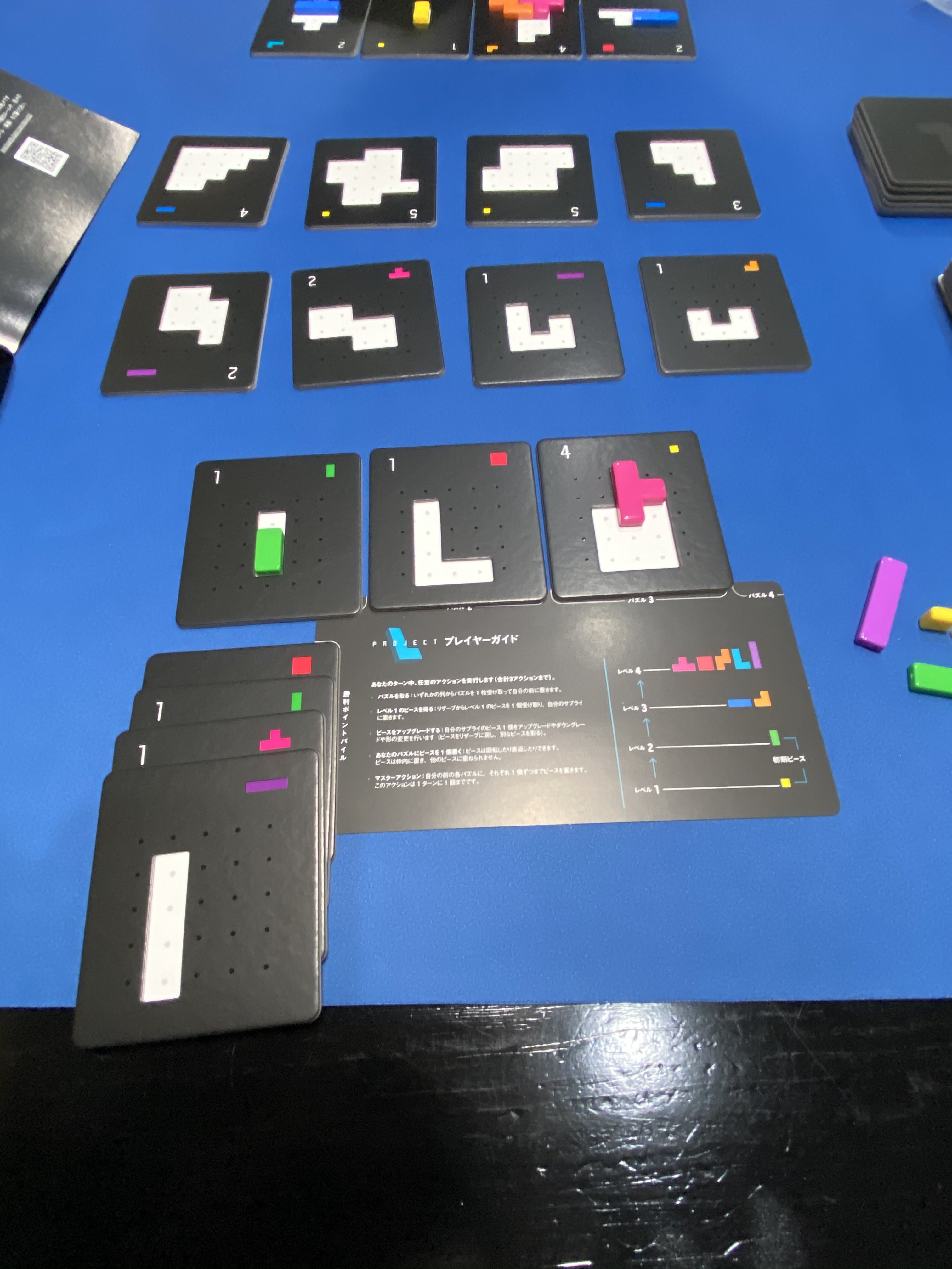 今まで聞いたことのないメカニクスの組み合わせに惹かれ、購入しました。期待半分怖さ半分でしたが、十分楽しめる内容でした。真っ黒なパズルパネルとカラフルなピースが主な内容物で、個人的にラボラトリーな雰囲気があって良かったです。