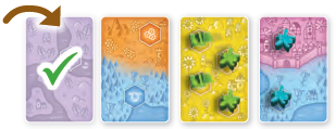 マジョリティを獲得したプレイヤーのワーカービープルが行から取り除かれた時点で、完全に空になった地形カードのうち最も右にあるカード1枚を行から取り除き、プレイエリアの横にある捨て札の山に捨て、残りのすべての地形カードをスライドさせて、行の左端のカードスロットが空になるようにします。次に、建物/地形カードのデッキの一番上から地形カードを取り出し、このスロットに配置します。