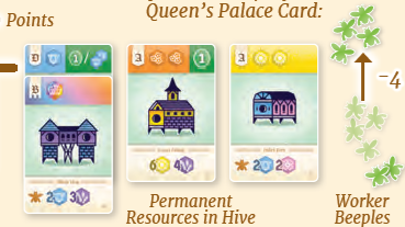 女王の宮殿カードの支払い例: - 巣の永続リソース - ワーカービープル |