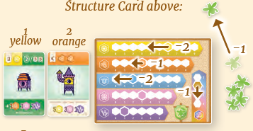 上図の建物カードの支払例: - 巣の永続リソース: - リソースの支払い: - ワーカービープルの支払い: |