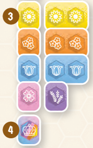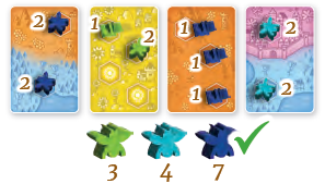注: マジョリティを獲得できなかったすべてのプレイヤーは、ワーカービープルをその行に維持されます – それらは個人サプライに戻りませんが、この新しく構成された行に残り、次にその列が完成したとき(完全に空の地形カードがなくなったとき)にマジョリティを争うことができます。
