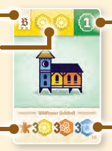 建物カード - ギルドバナー - 永続的なリソース - ポイント/ゲーム終了時のスコアリング - ワーカービープルコスト - リソースコスト |