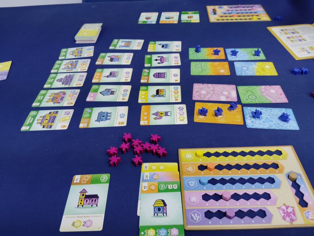 ワーカープレイスメント+拡大再生産で、蜂たちがいろんな蜜を集めて素敵な巣の王国を作っていきます。