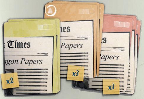 最後に、ランダムに選ばれたプレイヤー、もしくは物理的な新聞を最後に読んだプレイヤーにプレスパスを渡します。 これで開始する準備ができました。 |