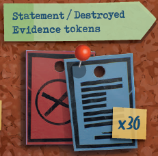 レポートカードをシャッフルし、各プレイヤーに1枚ずつ配ります。 これらのカードは、ゲーム中にあなたが調査しているレポートを表しており、最も関連性の高い証拠が明るくハイライトされ、関連性の低い証拠は暗くなっています。 |