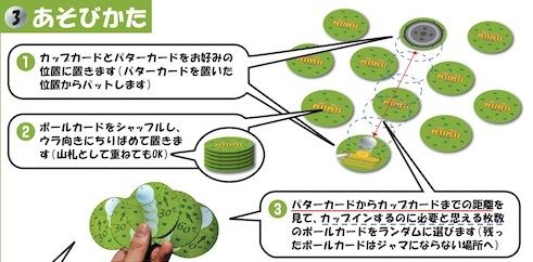 パターカードからカップまでの距離により、必要と思える枚数のボールカードを選び出します(残りのボールカードは片付ける)。