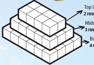 最下層 6つのダイスが4行 中間層 5つのダイスが3行 最上層 4つのダイスが2行 |