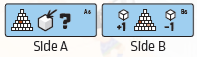 • スキル (青のトークン) は、ピラミッド内のダイスを操作して、目標トークン(オレンジのトークン)と目標カードの目標を達成するために使用されます。レベル1にはスキルがありません。