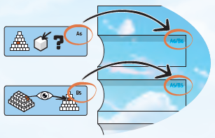 たとえば、トークンA6は A6/B6 ボードのくぼみに配置する必要があります。 |