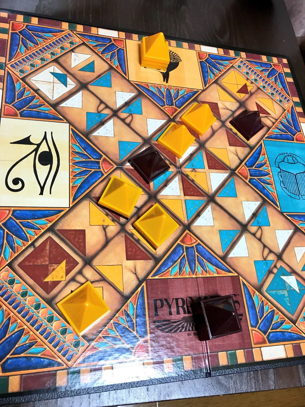 2人だとせめぎ合いのゲームになりますが、4人だと左右の人に自分の色のピラミッドを持っていかれてそれを戻す労力も必要なので、ちょっとどうしようもない感じになるときもありそうです。