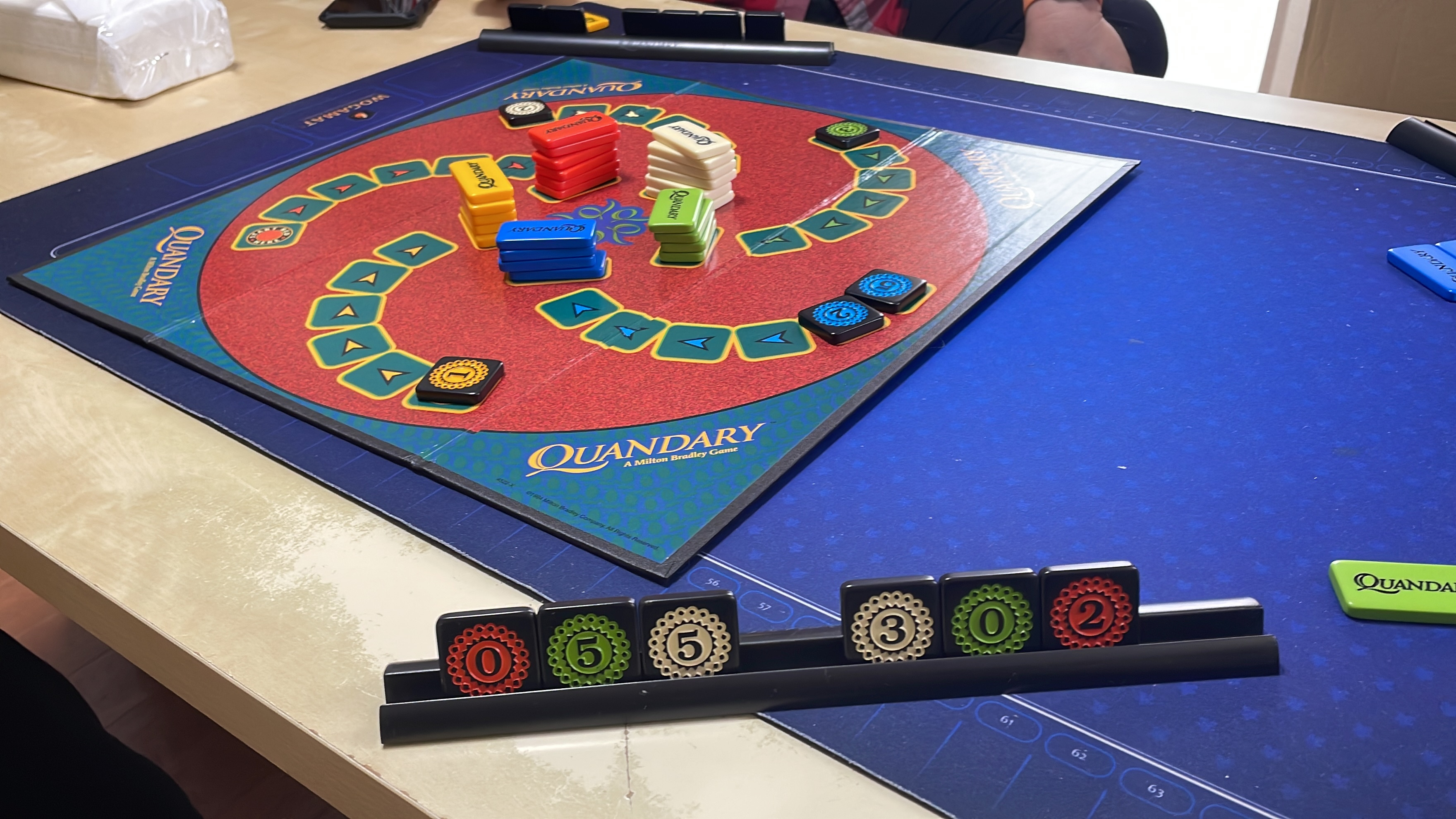 これを繰り返して、1つの色のタイルがすべて置かれたら、ゲーム終了で、最後に置いたタイルの数字がその色のチップの基本点になります。