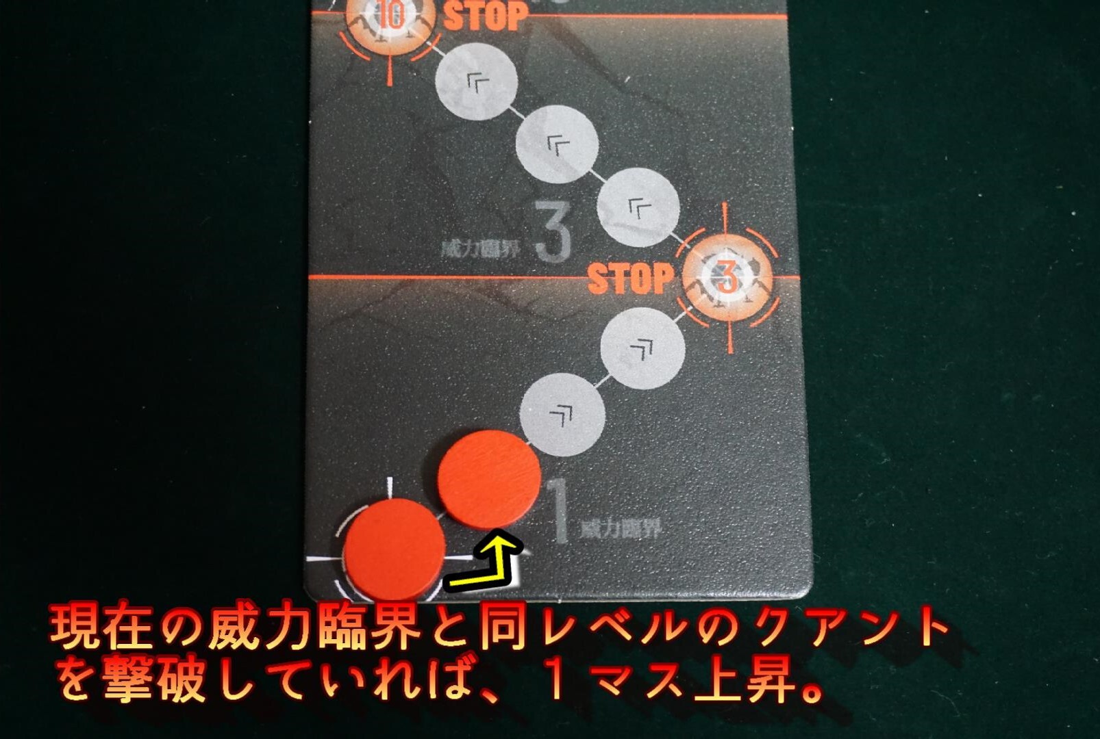 2ラウンド、3ラウンド開始時にはクアント出現に加え、威力臨界ボード上の作戦カードを捨て札に加え新たに山札を作ります。