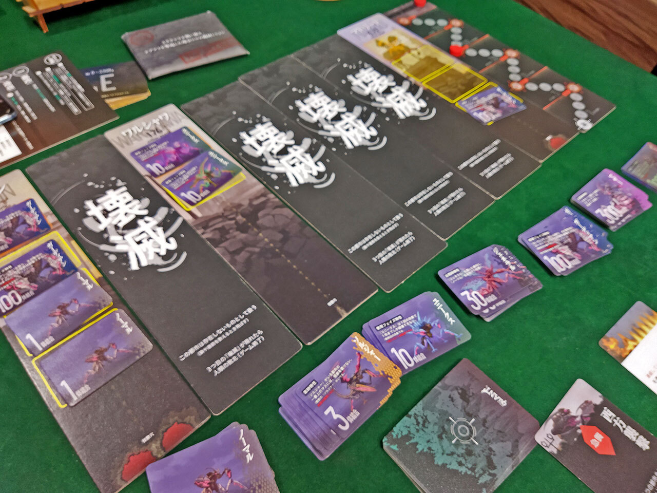 我々の作戦カードと怪獣側の脅威カードでデッキを組んで3巡したときに都市が5つ以上壊滅してなければ勝ち!レベルが上がるごとに能力がきちぃ怪獣、弱くても群れて圧迫する怪獣。強くなったのに弱い怪獣にも苦しめられるっていう、そして1巡するごとに追加されるカードも、このタイミングでありがとうございます!って感じるのほんと遊んでてめちゃくちゃ楽しいんよ。詳しいレビューは↓