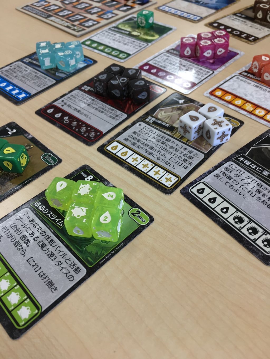 ドミニオンなどが好きな人にもダイスゲーが好きな人にもハマりそう、と認識してるのですが、インストが少々難しい。