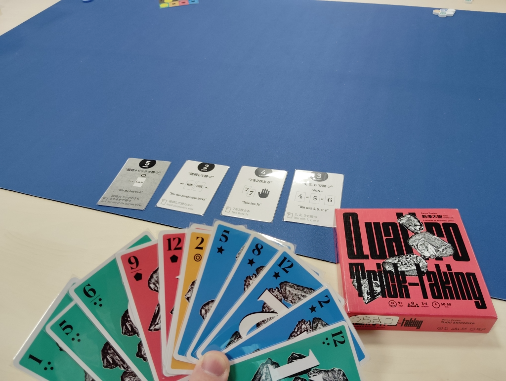 ビッド型のトリックテイキングゲームだが、ビッド方法(内容)が全員違い、トリック獲得数よりもどのようにトリックを獲得しているかや獲得内容が重要になっています。