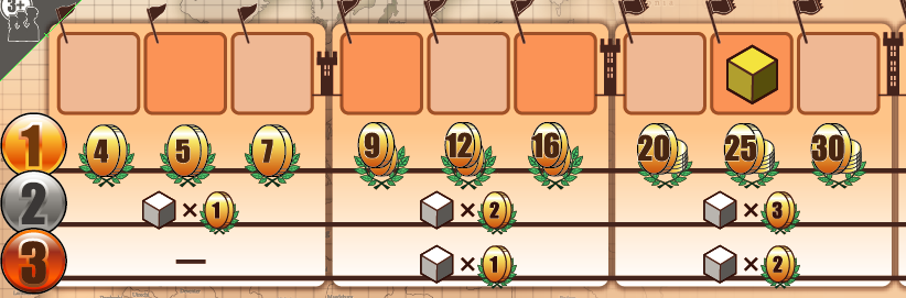 →そのラウンドで残り2枚になった順に、その都市の繁栄キューブを