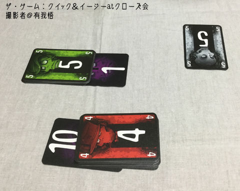 5色10枚(1~10のランク)のカードを昇順と降順の2列に出して、全部のカードを場に出す協力ゲーム。カードのかぶりがないのでトリックテイキングのカード構成と同じだ! トリテが作れる! と思ったのは内緒(