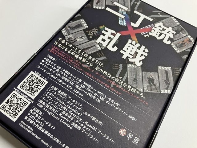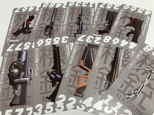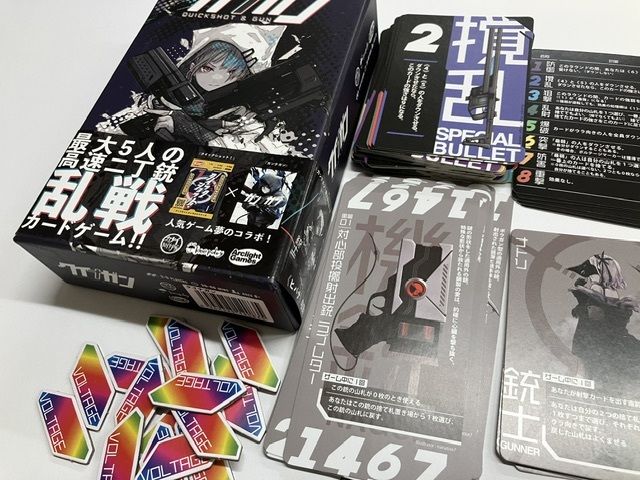 同人制作の2丁銃バトルゲームの『ガンナガン』の設定と、カナイセイジ氏のデザインしたカードゲーム『クイックショット』の基本システムを合体させたゲームとの事で、手軽に5人でガンバトルができるという点に期待して購入しました。