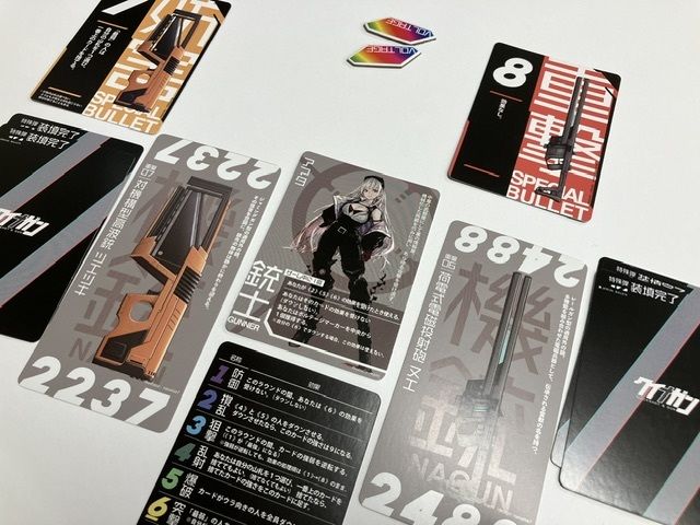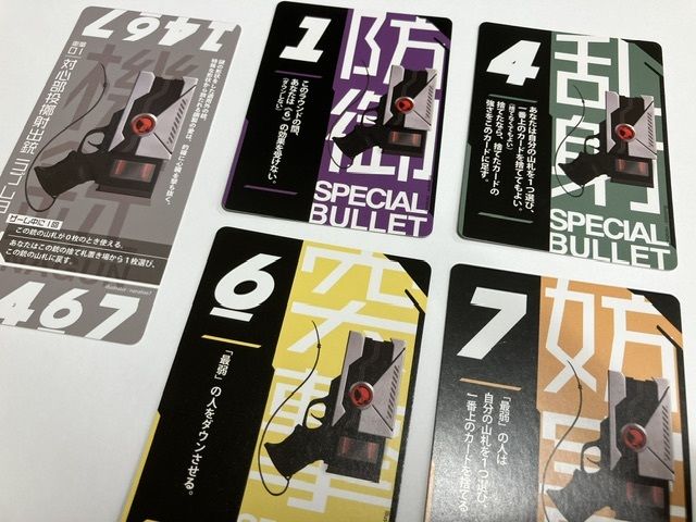 ↑そして各銃ごとの数字に対応した4枚ずつのプレイカード。これが数字ごとにそれぞれ特殊な効果を持ちます。