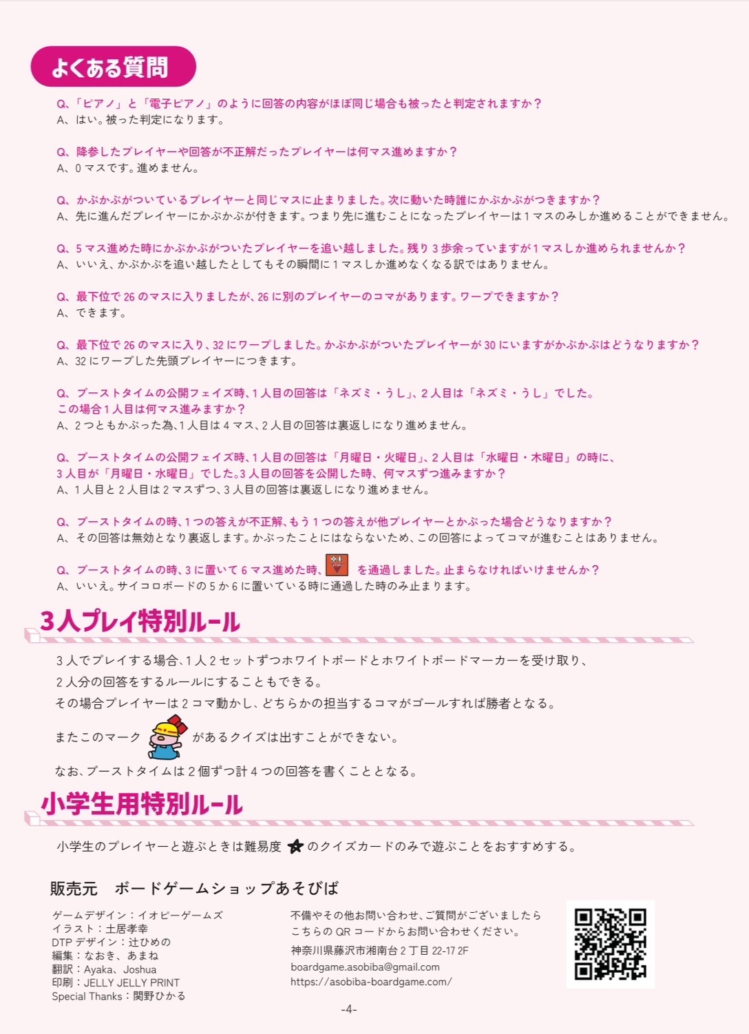 クイズすごろく かぶーるボードゲームショップあそびば(ボードゲームカフェ) @藤沢市湘南台さんのルール/インスト